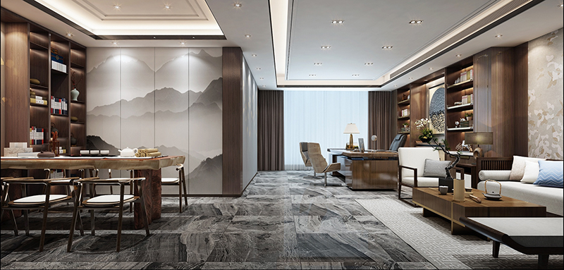 文化融合:我們?cè)谥惺斤L(fēng)格的設(shè)計(jì)中,巧妙融入現(xiàn)代元素,如簡(jiǎn)約的線條、明亮的燈光等,讓傳統(tǒng)與現(xiàn)代完美交融。這樣的設(shè)計(jì)不僅保留了中式風(fēng)格的古典美,還賦予了其新的生命力。對(duì)于傳統(tǒng)文化企業(yè)、金融機(jī)構(gòu)等追求穩(wěn)重和底蘊(yùn)的企業(yè)而言,中式風(fēng)無疑是最佳選擇。
